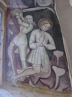 Le martyre de saint Georges est présenté dans une autre fresque qui, en trois panneaux également, décrit les innombrables tortures infligées au saint. La frise inférieure est ornée d'une série d'animaux sauvages. Le style de ces peintures est particulièrement « courtois ». Les divers actes du martyre sont montrés de manière digne et sobre malgré leur teneur. La décapitation de saint Georges est le sujet d'une autre fresque.