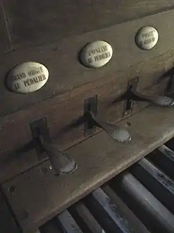 23 Jeux répartis sur 3 claviers manuels et pédalier.