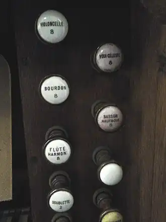 | Flûte Harmonique 8' | Dulciana 8' | Voix Céleste 8' | Bombarde 16' |