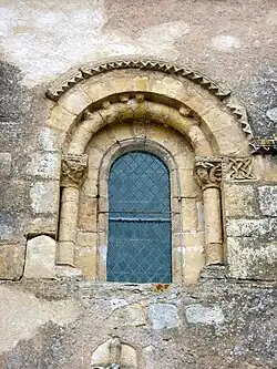 Dans la nef, il y a deux fenêtres, une de chaque côté. Au sud, il y en avait une deuxième qui a été bouchée lors de l'ajout de la sacristie. La fenêtre restée ouverte est richement décorée : soutenue par deux colonnettes aux chapiteaux revêtus de feuillage et de têtes, sa voussure torique est logée dans un angle où sont insérés, au-dessus d'elle, des petites têtes d'hommes ou d'animaux.