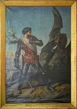 Quelques peintures du XIXe siècle ornent l'intérieur de l’édifice dont Baiser de saint Jacques, avec son cadre de bois doré (1843) du peintre parisien Joseph-Urbain Mélin. L'œuvre représente saint Jacques le Majeur donnant un baiser de paix au scribe Josias[26]. Enfin, une œuvre d'Olivier Pichat de 1851, Saint Georges terrassant le dragon, fut commandée par l’État en 1850[27].