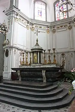 On trouve également dans l'église deux bas-reliefs en bois du XVIIIe siècle (Vierge à l'Enfant et Saint Georges terrassant le dragon)[32] ainsi que quatre bas-reliefs en bois du XVIIIe siècle intitulés Les Quatre docteurs de l'église latine[33]