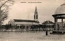 L'ancienne église paroissiale de Gagny datait du XIe siècle[2]. Marie de Rohan, duchesse de Chevreuse, y fut enterrée en 1679[3]. L'église fut endommagée par l'orage du , puis démolie en 1838. C'est à cette époque que les nombreuses dalles funéraires disparaissent. Celle de la duchesse est toutefois retrouvée en 1880 et désormais exposée au château de Dampierre.