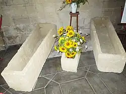 Le parvis a fait l'objet de fouilles archéologiques en 2009, qui ont révélé la présence d'un cimetière mérovingien daté des VIe et VIIe siècles. Conduites par Léopold Maurel, archéologue départemental, elles ont notamment permis de mettre au jour des bijoux (dont une boucle d'oreille en corbeille de type « Arégonde »), des armes (lames de couteau, scramasaxes), des fibules, mais aussi des restes de tissus minéralisés[4].