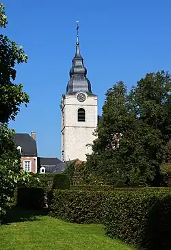 L'église, qui est à la fois la plus grande église rococo de Belgique[1] et « l'un des rares édifices religieux de ce style dans les Pays-Bas », date de la moitié du XVIIIe siècle, le siècle d'or du village[2], qui était alors très riche grâce à l'industrie de la bière[1].