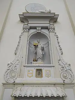 - Sur le chevet plat, au fond du sanctuaire, se trouve une large toile illustrant la réception solennelle des reliques du saint (artiste inconnu...)