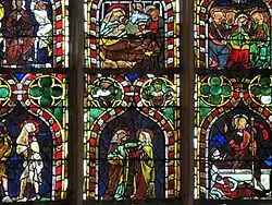 La nef de l'église est éclairée de nombreux vitraux, datant de l'âge d'or du gothique et du gothique tardif. Dans l'entrée du chœur, le vitrail ouest est le dernier témoin de la première vitrerie de l'édifice, vers 1310. Auparavant situé dans le chœur, dans l'axe, il figure la Vie du Christ, de l'Annonciation à la Résurrection avec, à la base, l'arbre de Jessé. Les vitraux de la nef sont marqués par les réfections du troisième quart du XVe siècle. Ils subissent tour à tour catastrophes naturelles, guerres, puis restaurateurs qui, au XIXe siècle, mutilent l'ensemble. Les panneaux nord demeurent cependant quasiment intacts. La troisième fenêtre en partant du fond figure l'hagiographie de saint Guillaume, ou plutôt de deux saints prénommés ainsi : à gauche saint Guillaume d'Aquitaine abandonne la vie militaire pour l'ascèse, et à droite, saint Guillaume de Malavalle se fait pèlerin et ermite. L'ensemble est attribué au maître de Walbourg de 1461.