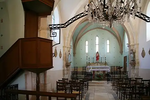 L’église renferme un grand retable[3] et de nombreuses statues en bois polychromes du XVIIIe siècle : Vierge à l'Enfant[4], saint Hilaire, évêque de Poitiers[5], Éducation de la Vierge[6], saint Joseph[7], saint Michel[8], sainte Catherine d’Alexandrie[9]et un Christ en croix[10].