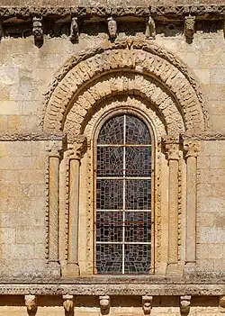 La décoration sculptée est ainsi particulièrement riche dans les bas-côtés dont les murs sont tapissés de longues arcatures géminées reposant sur des colonnes et encadrant les fenêtres en plein cintre.