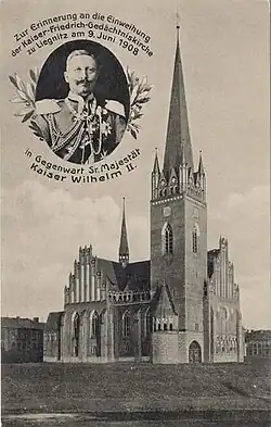 Les fonds pour la construction sont collectés auprès des collections publiques et des contributions ont également été apportées par le conseil paroissial de Legnica, la direction de la ville et l'empereur Guillaume II, qui, avec son fils Oskar, a honoré la cérémonie de consécration du temple le 9 juin 1908.