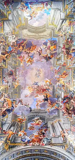 L’église est célèbre pour son immense fresque en trompe-l’œil de seize mètres de large sur trente-six mètres de long qui couvre le plafond de l'unique nef. Elle fut réalisée en 1685 par le peintre jésuite Andrea Pozzo. Celui-ci mit ici en pratique ses théories sur la perspective réunies dans son œuvre Perspectiva pictorum et architectorum.
