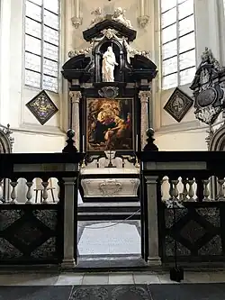 • Jean Antoine Tucher, chevalier, marié à Sussana de Cordes (morte en 1725), tous deux enterrés à l'intérieur de la chapelle St-Anthonys, sculpté par Michiel van der Voort l'Ancien[6]