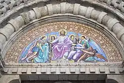 - Le tympan en terre cuite émaillée de l'église évoque le Jugement dernier. On peut voir sur ce tympan la signature de Gaston Virebent et la date de 1862, marquant probablement la fin des travaux d'agrandissement[3].