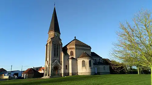L'église précédente avait été construite au XIIIe siècle, en 1224, le seigneur, Jean de Tournelle, partit en pèlerinage de Saint-Jacques de Compostelle. Le chœur fut remanié au XVIe siècle. Cette église fut anéantie par l'artillerie allemande au cours de la Première Guerre mondiale, en . L'église actuelle fut construite durant l'entre-deux-guerres.