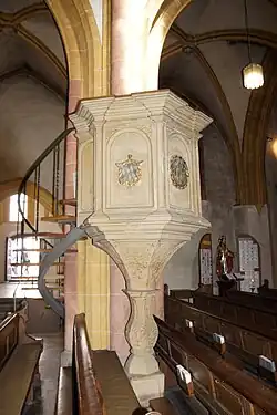La chapelle Saint-Sébastien est construite en 1700 devant le portail Sud. L'état de l'église nécessite une restauration vers 1860. En 1898, le mobilier baroque est enlevé et remplacé par un mobilier néo-gothique, qui comprenait des autels, des stalles, les stations de la croix, une galerie en pierre et des vitraux dont les scènes sont basées sur des dessins de Franz Xaver Zettler de Munich; l'intérieur a également été aménagé selon le goût médiéval. Dans les années 1978-1981, une restauration intérieure a été effectuée, par laquelle le mobilier néo-gothique a été remis en place et restauré.