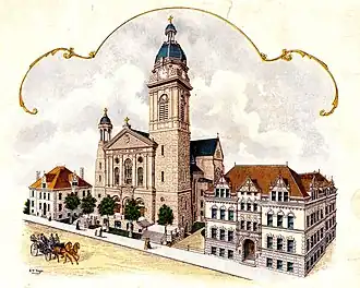 Les plans sont dessinés par Adolphus Druiding[1], tandis que les travaux démarrent en 1893. La première pierre est bénite en devant cinquante mille personnes. une première messe de veillée de Noël est célébrée dans les fondations. L'église est construite en style néo-renaissance avec un intérieur particulièrement riche.