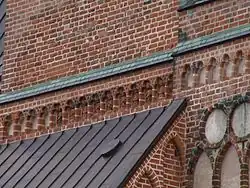 Le style du bâtiment, le gothique de brique, est caractéristique de la région et accompagne la progression des Chevaliers Porte-Glaive et des marchands de la Ligue Hanséatique.