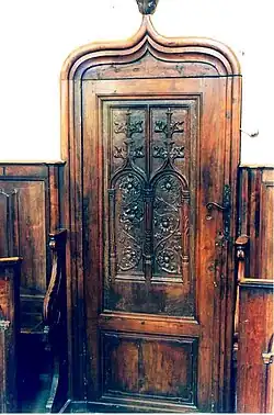 - La porte de la sacristie, panneau de noyer provenant du couvent des récollets d’Annonay (disparu au début de la Révolution française) et classée monument historique au titre d'objet le [8].