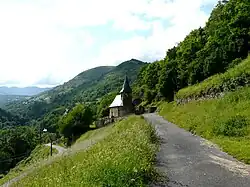 La façade méridionale est percée d'une porte romane surmontée d'un linteau, d'un tympan non orné et d'une archivolte à double voussure.