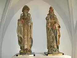 - deux statues de saint Pierre et saint Augustin du XVIe siècle en pierre polychrome classé à titre objet en 1928[13]