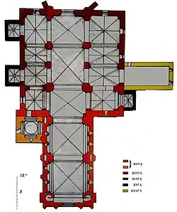 Au XIIIe siècle, le transept et le chœur sont partiellement reconstruits. Au siècle suivant, des voûtes à croisées d'ogives viennent remplacer la file de coupoles qui couvrait originellement l'édifice. Lors des travaux de nettoyage de la pierre en 1995, il a été découvert que les clefs de voûte de la nef étaient peintes en rouge et or et fermées par des bouchons en bois. Deux chapelles latérales sont également ajoutées de part et d'autre du chœur au XIVe siècle. Au XVe siècle, la façade se voit dotée d'une large rosace à remplage flamboyant, cadeau de Jean d'Orléans (grand-père du roi François Ier).