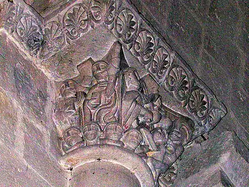 Sur l'ébrasement sud il reste cinq sculptures romanes qui sont toujours lisibles :