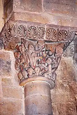 Les chapiteaux de l'arc triomphal représentent le Jugement dernier (au nord) et le Martyre de Saint-Laurent (au sud).