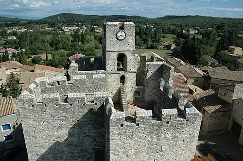 Le château est surélevé au XIVe siècle et « de la même époque date aussi la fortification de l'église, qui devint ainsi une autre forteresse, doublant le château et réunie à celui-ci »[3]. Cette fortification correspond à une grande campagne de mise en défense des biens de l'église du sud-est de la France voulue par la papauté d'Avignon, sous la direction du cardinal Anglic Grimoard[6].