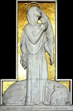 La statue de la Vierge, conçue pour la cérémonie de bénédiction du terrain qui a eu lieu le , a été réalisée par le sculpteur-mouleur François Carli. La stèle, représentant Fortunée tenant la palme des martyres avec à ses pieds un lion endormi, a été réalisée par Louis Botinelly. Le marbre d'un lissage parfait se détache sur un fond mosaïqué d'or.