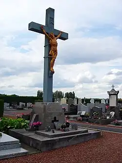 Le dimanche , Monseigneur Henri-Édouard Dutoit se rendit à Rouvroy - Mines pour bénir un Christ destiné au calvaire qui, dans le nouveau cimetière du quartier, devait orner les sépultures des curés et des religieuses. Ce Christ de grandeur nature, en pierre de Soignies, avait été exposé devant la balustrade du chœur, sur un lit de parade. La donation en avait été faite par la Société des Mines.
