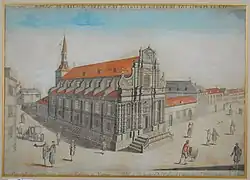 Arrivés à Namur en 1610, les jésuites y reprennent un petit collège en l’agrandissant et construisent ensuite, attachée au collège, une église dédiée à saint Ignace, le fondateur de la Compagnie de Jésus. Le frère jésuite Pierre Huyssens, maître du baroque belge, en est l'architecte.