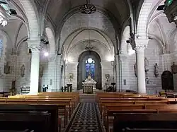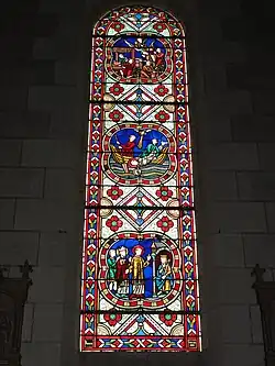 Les vitraux qui garnissent les baies en arc brisés sont confectionnés dans les années 1880 dans l'atelier tourangeau de Lucien-Léopold Lobin[4].