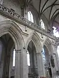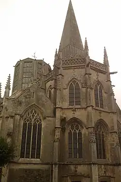 De l'église construite entre 1430 et 1540[5], il ne reste rien de sa nef du XVe siècle[6], ni de son dôme central byzantin, œuvre de Richard Gobey[7], du début du XVIIe siècle}[6]. Il ne subsiste de l'église, d'avant sa ruine en , qu'une partie du côté droit du croisillon et son chevet gothique flamboyant qui ont pu être restauré. Son chœur rayonnant fut édifié par la riche bourgeoisie marchande sous le règne réparateur de Louis XI[8].