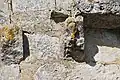 Le décor sculpté se retrouve sur les trois chapiteaux et les modillons de la corniche sud de l’abside. Toute l'ornementation, ayant été sculptée en mauvaises pierres, est très-dégradée et leur interprétation est problématique.