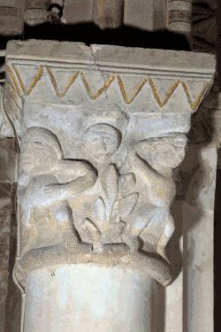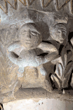 Sur un chapiteau on peut, peut-être, voir la représentation du péché d'Adam.
