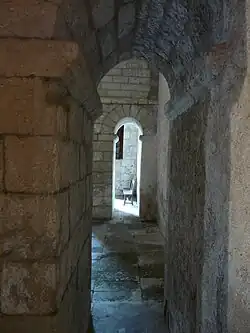 L'église est fortifiée du XIIIe au XVe siècle. La travée du chœur a été surélevée pour y établir un curieux système de chambres de défense sur deux niveaux autour des reins de la coupole auxquels on accédait par un escalier à vis placé dans l'angle nord-ouest de la travée du chœur[2]. La travée de l'abside a été surélevée probablement à la même époque.