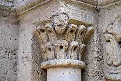- Le troisième chapiteau est à feuillage, avec un visage.
