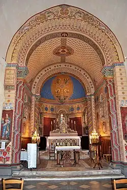La voûte de l'abside s'orne d'un médaillon qui représente le principe de la Trinité.