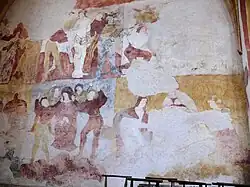 Sur le mur ouest, on peut voir le Christ outragé par quatre soldats, une scène de martyre.