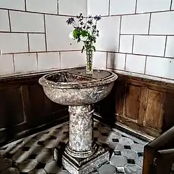 On y trouve un autel tombeau du XVIIe siècle et une voûte en berceau en boiserie.