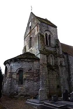 L‘église repose sur une terrasse dominant l‘Ourcq que l‘on devine à travers les frondaisons d'un parc (propriété privée). Selon certains auteurs, il s‘agit des substructures de l‘ancienne villa de Brennacum, construite par Clotaire Ier, fils de Clovis[4].