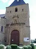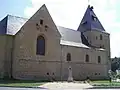 L'édifice est construit en pierres jaunes. Une tour-porche, percée de canonnières et comportant plusieurs salles à différents étages, s'ouvre au nord par un portail. La tour permettait d'accéder aux combles qui servaient de refuge. Tout le tour de l'église est percé à hauteur d'homme de canonnières. Une bretèche, dont il subsiste quelques vestiges, protégeait une des fenêtres[1].
