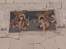 Tout autour de la nef figure le chemin de croix peint dans l'immédiat après-guerre dans l'esprit du modernisme naissant des années 1950. Quatorze stations sont réparties en cinq groupes reliés entre eux par des raccourcis graphiques narrant la montée de Jésus au Calvaire.