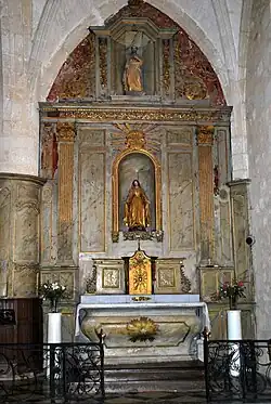 L'autel de la Vierge est de style Louis XVI, surmonté d'un grand retable en bois. Dans les niches, une statue de saint Joseph en bois doré, tout en haut. Au-dessus du tabernacle, une statue en bois polychrome de Notre-Dame de Grâces, datant d'environ 1462. Elle est représentée les mains ouvertes à hauteur des hanches, la Vierge se tient debout sur la voûte céleste, écrasant de son pied le serpent qui laisse échapper de sa gueule la pomme du péché originel. La statue est particulièrement riche, les vêtements de la Vierge étant couverts de feuilles d’or. Il s’agit là de l’iconographie de Notre-Dame de Grâces, dont la dévotion connaît un grand succès aux XVIe et XVIIe siècles.