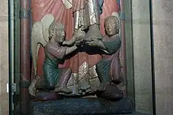 - Datant de la première moitié du XVIe siècle, les quatre stalles du chœur en bois sculpté[4].