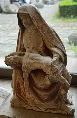 - une dalle funéraire du XIVe siècle[3],