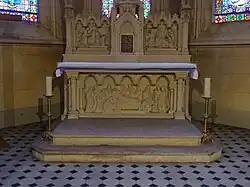 Dans la chapelle de la Vierge se trouve un autel offert en 1872 par la famille Berrubé, également donatrice de nombreux vitraux (cf. infra). Cet autel de pierre est orné de bas-reliefs représentant la Dormition de la Vierge et, sur les côtés, la Visitation et la Nativité. L'autel est surmonté d'une statue de la Vierge entourée de l'archange Gabriel et de sa cousine Sainte Élisabeth.