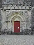 Des chapiteaux ornent également les pieds droits du portail du XIIIe siècle. La voussure supérieure du portail offre une interprétation naïve des Vieillards de l'Apocalypse, représentés maladroitement en position assise. Au-dessus du portail, deux lions en relief se font face et tiennent sous leurs griffes des personnages allongés qu'ils dévorent.