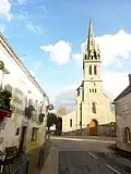 Le clocher, à chambre de cloches et de plan carré, est amortie d´une flèche octogonale, ornée de crossettes et encadrée à sa base par quatre frontons et quatre lanternons[1],[2],[3].