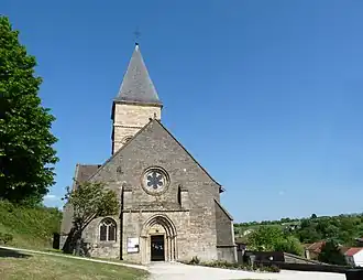 Construite à flanc de coteau, cette église en croix latine est composée d'une tour romane du XIIe siècle, surélevée au XVIIIe siècle, d'une façade romane avec rosace du XIIe siècle et d'une nef ogivale du XVe siècle.